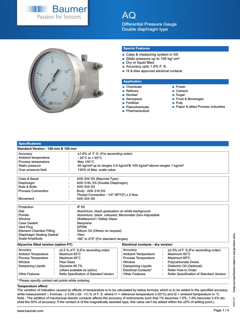 Baumer AQ DS 1701 PDF Pressure Measurement Pressure